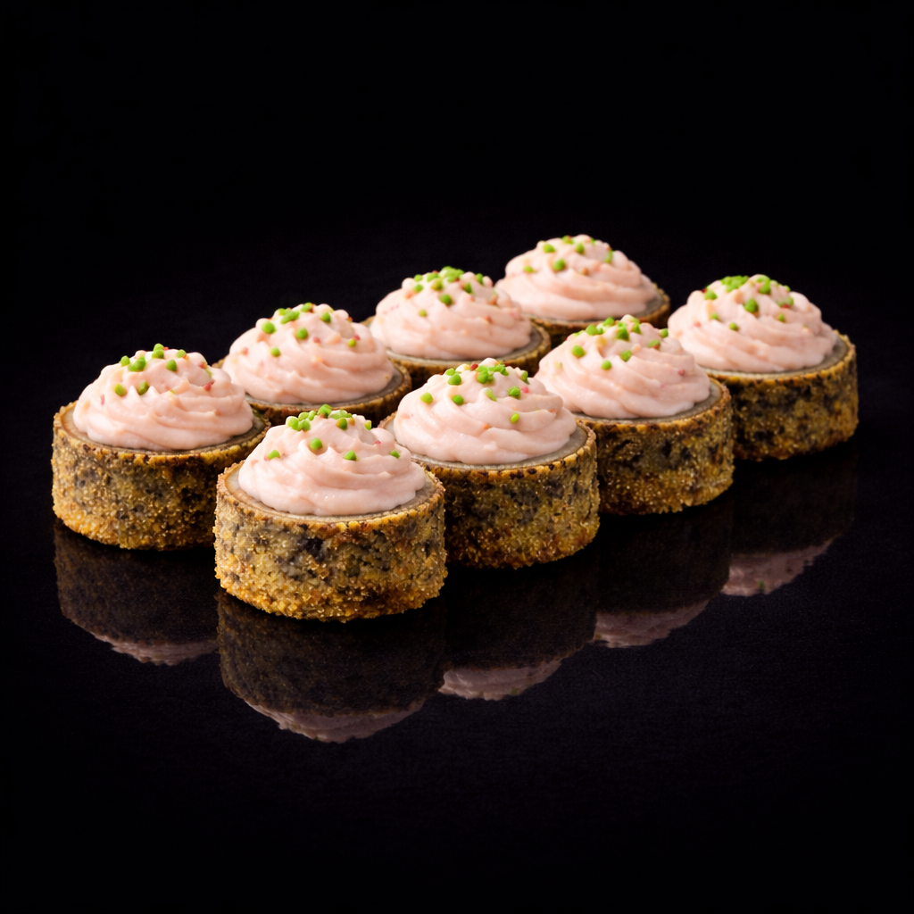 Wasabi roll is a bold and flavorful sushi creation made with seasoned rice and nori, filled with tender shrimp, creamy cream cheese, tangy pickled cucumber, and refreshing chuka salad, finished with spicy wasabi and vibrant tobiko for a perfectly balanced kick.